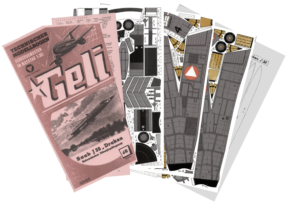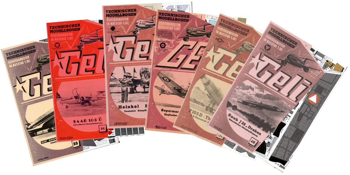 The one and (nearly) only vendor of paper models was GELI. The reasons were simple: GELI was an Austrian company; their products - only models of airplanes in 1/33 scale - were incredibly cheap and hence affordable to everyone. A vendor based in Germany - Schreiber - was far too expensive for the small wallets of pupils, and publishers from eastern countries did not make it across the iron curtain and were not available at that time.