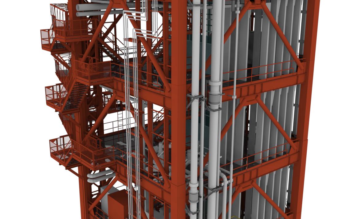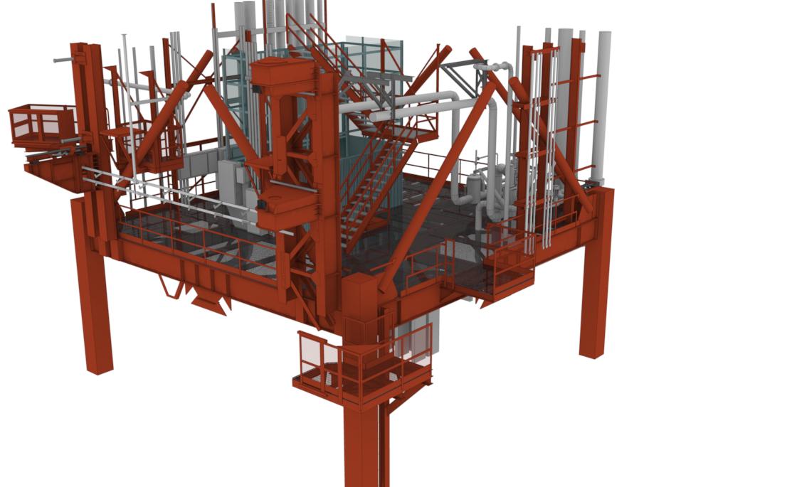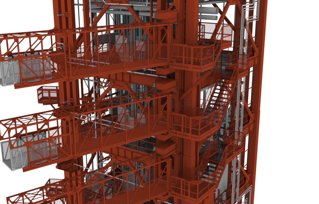 Here is the swing arm cluster between Level 120 and Level 160. The access platform for swing arm #4 (the top one in the picture), that is also accessed via Level 140 like the arm below, is special. The platform winds around the main column, and the access stairway is on the inside ...